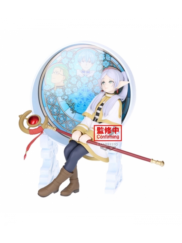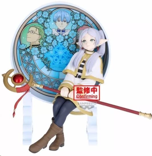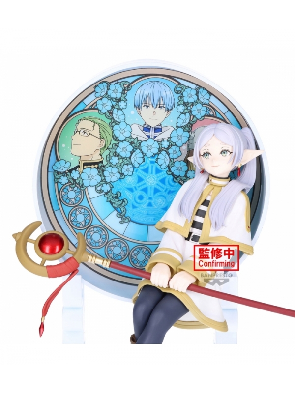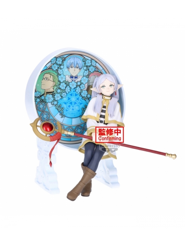 Frieren cobra vida en esta impresionante figura de 15 cm dentro de la línea Glasscape, inspirada en Frieren: Beyond Journeys End. Sentada con elegancia y serenidad, la elfa maga sostiene su característico bastón mientras su expresión tranquila refleja la melancolía y sabiduría de su largo viaje. La base de la figura cuenta con un hermoso vitral decorado con motivos azules y la presencia de otros personajes de la serie, añadiendo un toque artístico único.