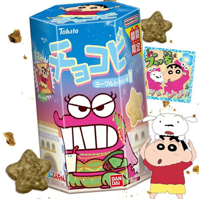Las galletas Tohato Chocobi edición Shin Chan sabor yogur Lassi son el snack perfecto para quienes aman los sabores originales y la diversión. Estas crujientes estrellas combinan el dulzor del yogur con el toque refrescante del Lassi, creando una mezcla deliciosa y sorprendente.