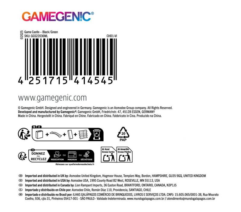 La caja Game Castle es una solución todo en uno con acceso doble para los fans de cualquier juego de mesa o juegos de cartas. Este nuevo producto se puede abrir por los 2 lados para que puedas acceder separadamente a las cartas o a las fichas. Su diseño innovador la convierte en una manera muy segura de guardar tus accesorios que además se puede transportar fácilmente gracias a su asa integrada y una correa para el hombro desmontable y ajustable. Así te la podrás llevar a tus noches de jue...