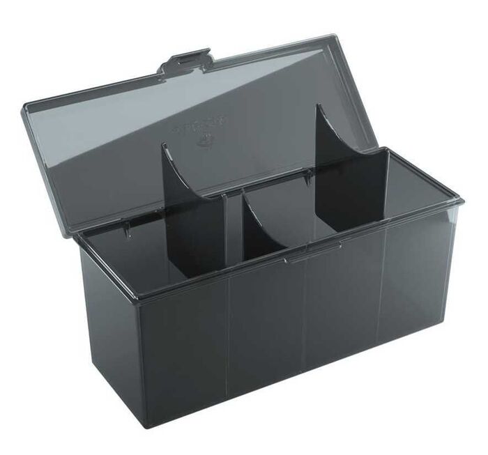 Mazos completos, dados, fichas o hasta 320 cartas con doble funda: todo eso puede guardar y proteger el modelo Fourtress. Esta robusta caja está disponible en cinco colores semitransparentes para identificar fácilmente su contenido. El cierre integrado elimina por completo el riesgo de aperturas, mientras que los dos paneles interiores se pueden extraer para crear compartimentos más grandes. Las cajas son apilables, lo que las convierte en las compañeras de viaje perfectas y en una excelente solución de almacenamiento para casa.