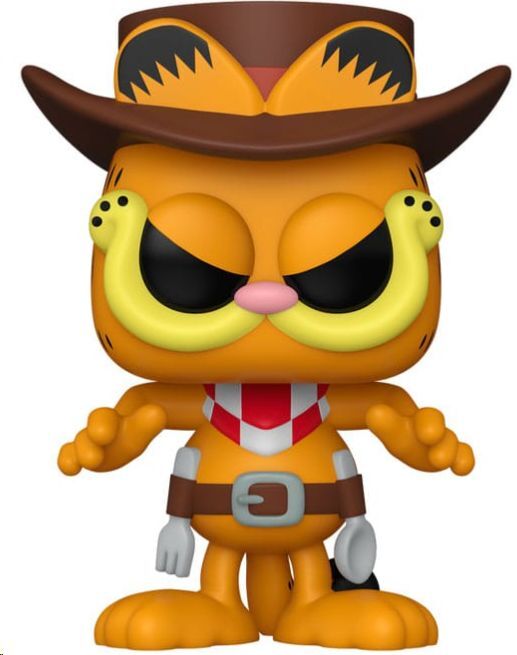 Este Pop! presenta a Garfield con un divertido atuendo de vaquero, mostrando una faceta distinta del famoso gato amante de la lasaña. Su sombrero, cinturón y pañuelo lo transforman en todo un sheriff del lejano oeste con un estilo muy peculiar.