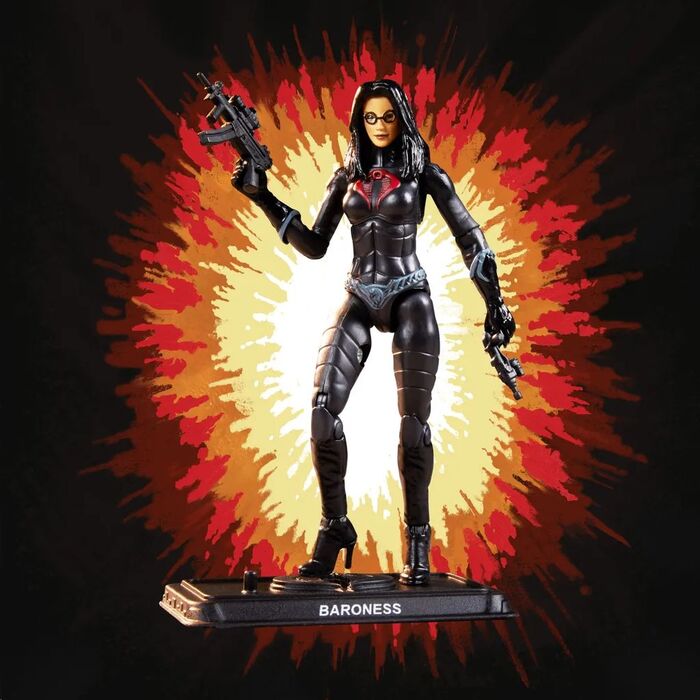 Hasbro presenta dentro de la colección Retro la figura de The Baroness basada en la popular serie de figuras G.I.Joe de los 90. Se trata de una figura articulada hecha en PVC que mide unos 12 cm de alto. Incluye complementos y múltiples armas.