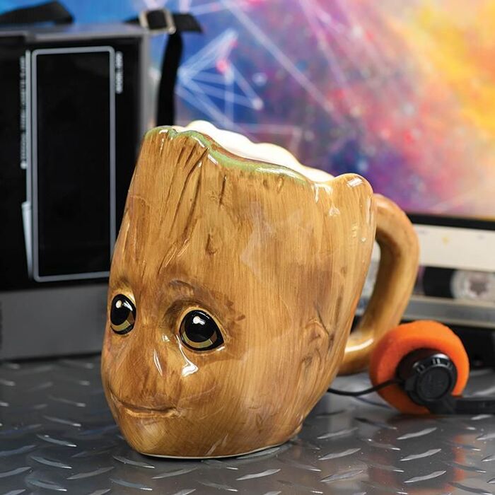 Perfecta para regalar o para añadir a tu colección, esta taza no solo es funcional, sino también una pieza de decoración que hará brillar cualquier rincón. Disponible en Comic Stores y Freak Point, tanto en tiendas físicas como online. ¡Hazte con ella y disfruta de Groot en cada sorbo!