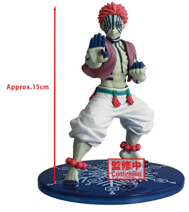Siente la intensidad del combate con esta estatua de Akaza de Guardianes de la Noche en la línea Vibration Stars de Banpresto, una figura que transmite fuerza, agilidad y una presencia imponente en plena acción.
