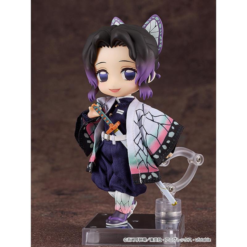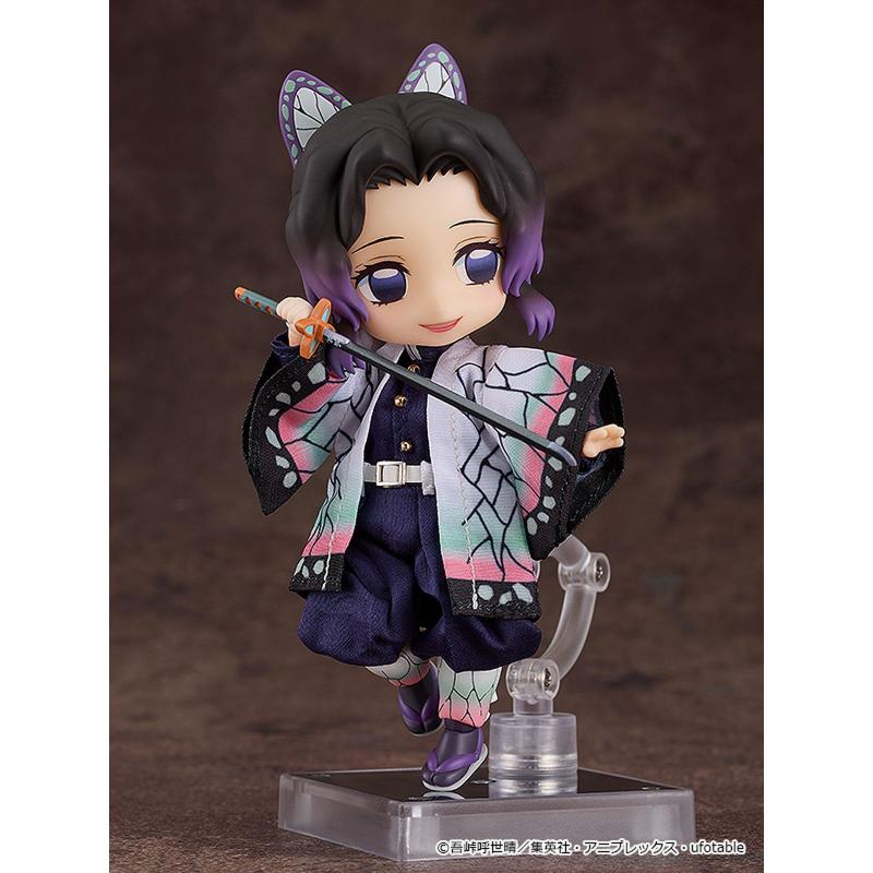 La figura viene con varios accesorios cuidadosamente detallados, incluyendo una Nichirin Blade, su abrigo característico, y un uniforme del Demon Slayer Corps. Además, incluye un par de sandalias Zori con imanes en la suela para mayor estabilidad, un par de manos cerradas, una mano derecha para sostener la espada, una mano izquierda para la vaina, un soporte articulado, y una base magnética. Este Nendoroid Doll es una pieza imprescindible para los fanáticos de Demon Slayer que buscan una representación adorable y detallada de Shinobu Kocho en su colección.
