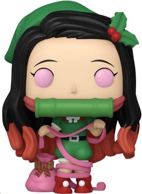 Esta figura Pop! de 9 cm presenta a Nezuko Kamado en una adorable versión navideña. Viste un traje verde con detalles rojos y blancos, complementado con un gorro festivo adornado con acebo. Su característico bambú en la boca se mantiene, pero adaptado al estilo de la temporada.