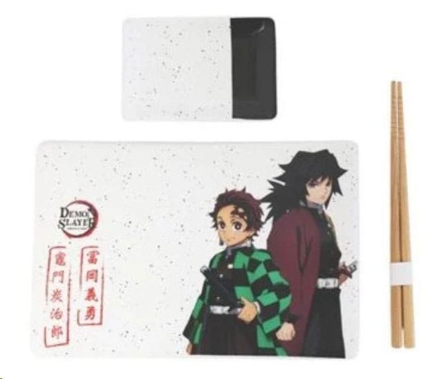 GUARDIANES DE LA NOCHE SET DE PLATO + PALILLOS DE SUSHI DE CERAMICA TANJIRO & GIYU