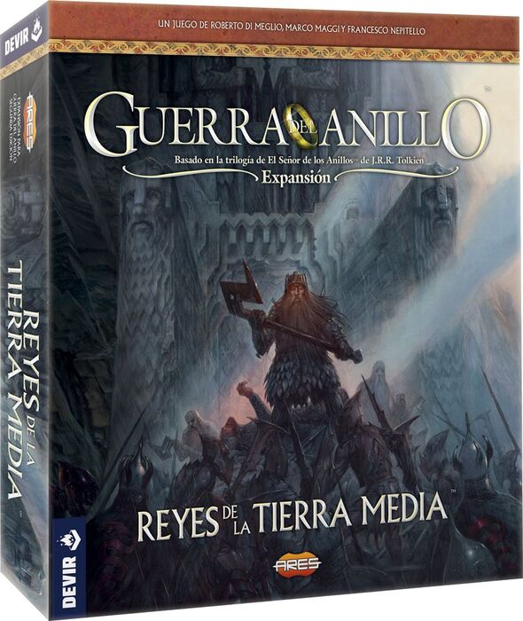 ¡Expande Guerra del Anillo con el poder de los antiguos reyes y gobernantes de los Pueblos Libres! Reyes de la Tierra Media es una expansión que requiere el juego base y que incluye 13 figuras de plástica, 5 anillos de soberano corrompido, 2 dados de acción especial, más de 30 nuevas cartas, 1 tablero de corrupción de soberano y 14 contadores, además de hojas de referencia y el reglamento.
