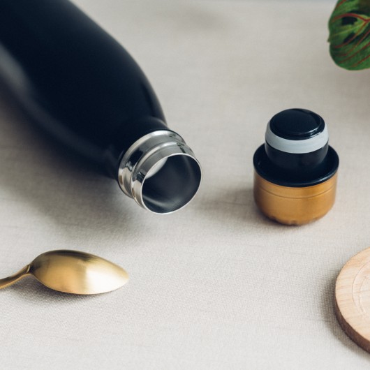 La botella es de color negro con detalles en dorado, y presenta la famosa cita: "Dobby has no master, Dobby is a free elf", destacando no solo el personaje sino también uno de los momentos más emotivos y poderosos de la serie. Con una altura de 25 cm y un diámetro de 7 cm, la botella tiene una capacidad de 500 ml, perfecta para llevar la cantidad adecuada de líquido sin ser demasiado pesada o voluminosa.