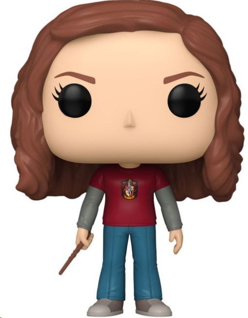 Esta figura Pop! de 9 cm presenta a Hermione Granger lista para lanzar el hechizo Oppugno. Con su cabello castaño suelto y una expresión decidida, viste una camiseta roja con el escudo de Gryffindor sobre una camiseta gris de manga larga, acompañada de vaqueros y zapatillas.