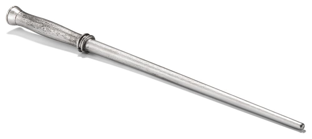 Este set incluye dos réplicas a escala real 1:1 de las varitas utilizadas por Harry Potter a lo largo de las primeras películas. Por un lado, la primera varita que utiliza en las dos primeras entregas y, por otro, la icónica varita de acebo que lo acompaña en el resto de la saga cinematográfica. Ambas piezas están fabricadas en resina de alta calidad y cuentan con un elegante acabado en tono plateado antiguo que refuerza su carácter de edición conmemorativa.