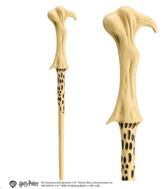 Con su inconfundible forma ósea y su diseño elegante, esta varita es perfecta para representar a uno de los villanos más icónicos de la saga Harry Potter. Fabricada en materiales ligeros y resistentes, permite tanto el juego activo como la exhibición decorativa.