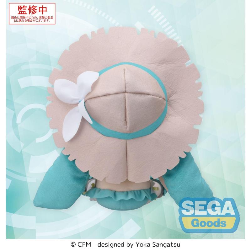 Este peluche presenta a Miku con un atuendo veraniego, inspirado en la versión Conceptual Series, con detalles cuidadosamente bordados y materiales de alta calidad. Su característico cabello turquesa, su sombrero de paja y su vestido decorado con volantes hacen que luzca encantador desde cualquier ángulo. Su suavidad y tamaño lo hacen ideal tanto para abrazarlo como para exhibirlo en una colección.