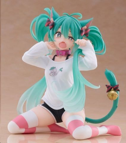 Esta estatua PVC Desktop Cute Figure Hatsune Miku Cat Ear T-Shirt presenta a la icónica vocaloid con un estilo desenfadado y adorable. Con una altura aproximada de 13 cm, muestra a Hatsune Miku con camiseta de orejas de gato, aportando un aire casual y muy simpático que encaja perfectamente en cualquier colección temática.