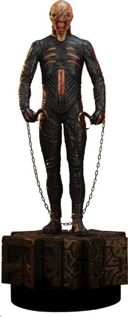 La figura se alza sobre una base inspirada en la icónica caja rompecabezas, elemento clave en el universo Hellraiser, aportando coherencia y fuerza visual al conjunto. Con unas dimensiones aproximadas de 76,2 x 35,6 x 35,6 cm, es una pieza pensada para destacar en cualquier colección dedicada al terror y al coleccionismo de alto nivel.