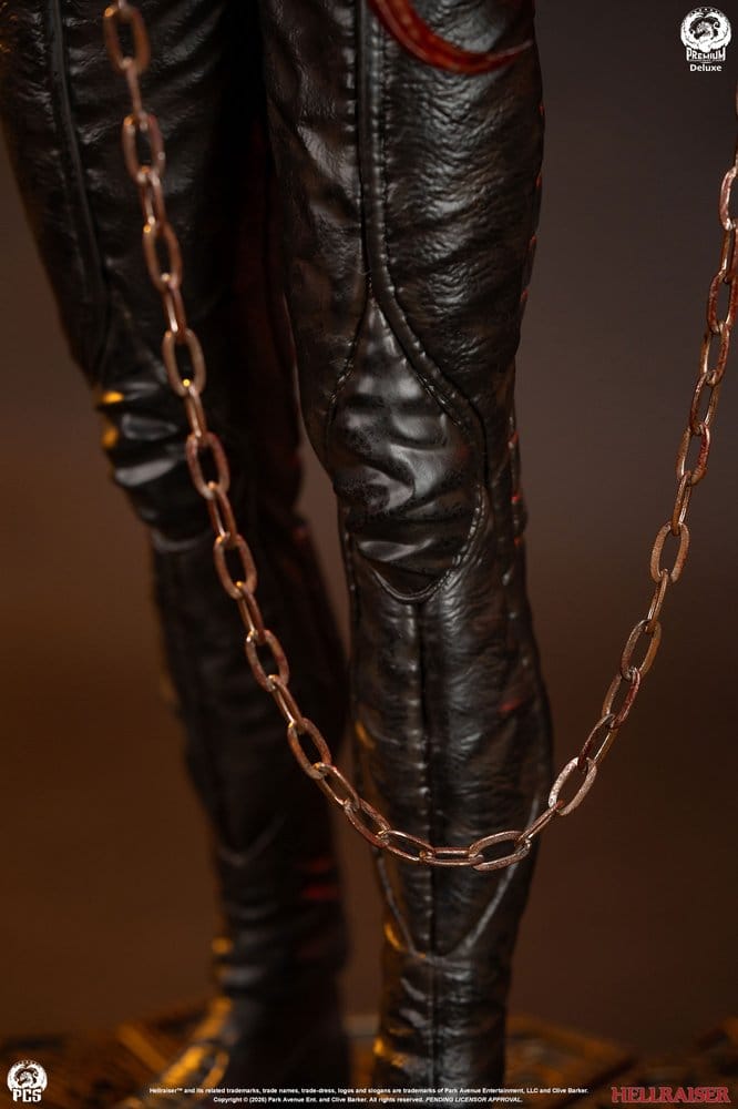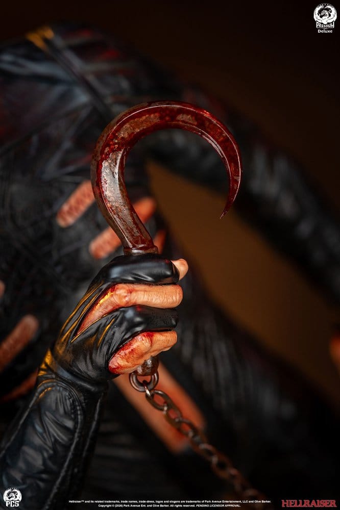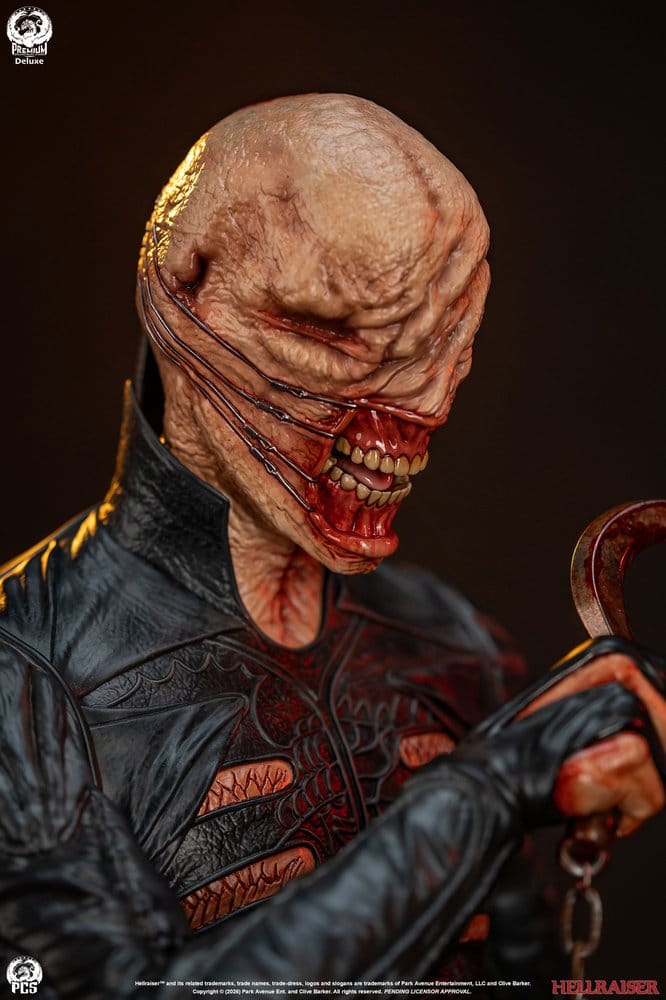 La estatua se alza sobre una base inspirada en la icónica caja rompecabezas, elemento clave del universo Hellraiser. Esta Edición de Lujo incluye además un retrato intercambiable con la boca abierta y un brazo levantado adicional, ofreciendo más opciones de exposición. Con unas dimensiones aproximadas de 76,2 x 35,6 x 35,6 cm, es una pieza pensada para destacar en colecciones exigentes.