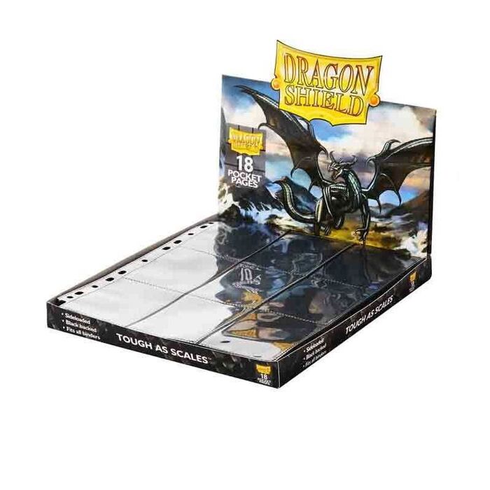 Hoja de 18 bolsillos para cartas standard de la marca Dragon Shield, de carga lateral. Encajan a la perfección en cualquier binder, especialmente diseñadas para los Slipcase Binders de Dragon Shield.
