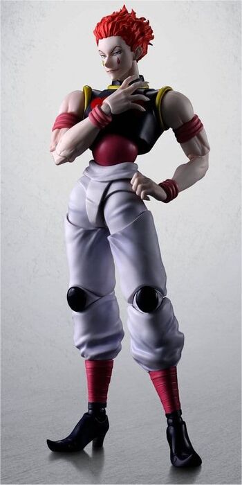 Esta figura articulada de Hysoka de la línea S.H.Figuarts recrea con gran fidelidad a uno de los personajes más carismáticos de Hunter x Hunter. Con una altura aproximada de 17 cm, destaca por su esculpido detallado, proporciones cuidadas y acabados precisos que reflejan su vestimenta característica, su complexión atlética y su expresión inquietante.