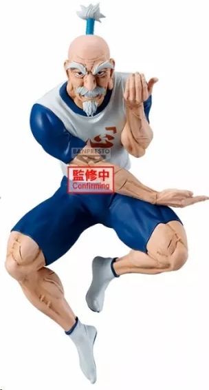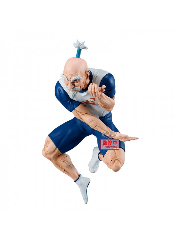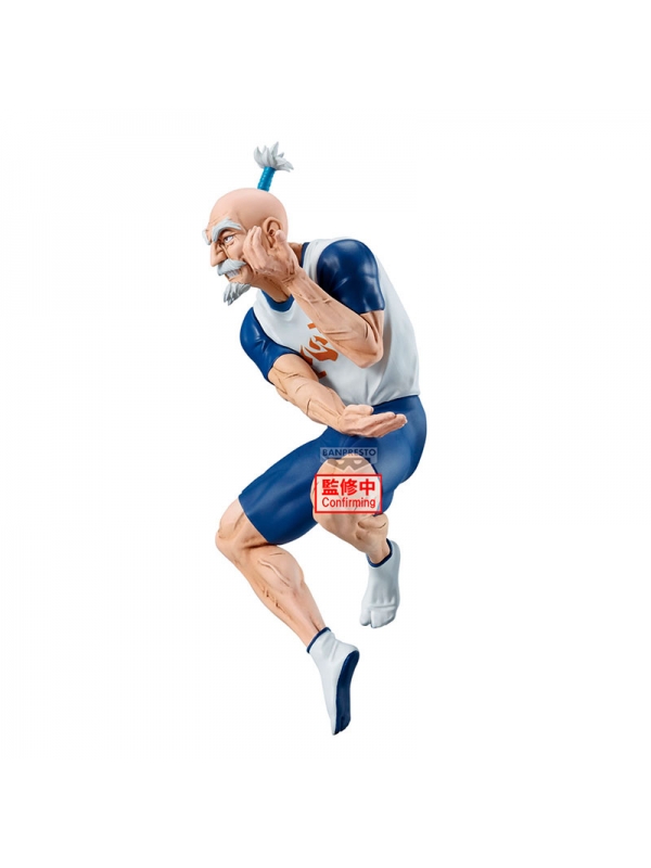 El esculpido de esta figura destaca por su nivel de detalle, desde las arrugas en su rostro hasta las marcadas líneas de sus músculos. Su icónico peinado con el moño azul ha sido recreado con gran fidelidad, al igual que la textura de su uniforme de entrenamiento. Los sombreados y acabados de pintura aportan profundidad, dándole un realismo impresionante que resalta su energía y vitalidad.