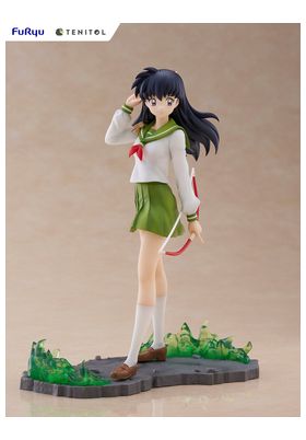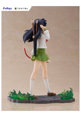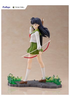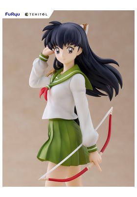 La figura de Kagome Higurashi, perteneciente a la línea Tenitol y basada en el anime clásico Inuyasha, presenta a la heroína en una pose serena pero lista para la acción, sujetando su característico arco. Con su uniforme escolar verde y blanco ondeando al viento, y el cabello negro largo cuidadosamente esculpido, transmite tanto delicadeza como determinación.