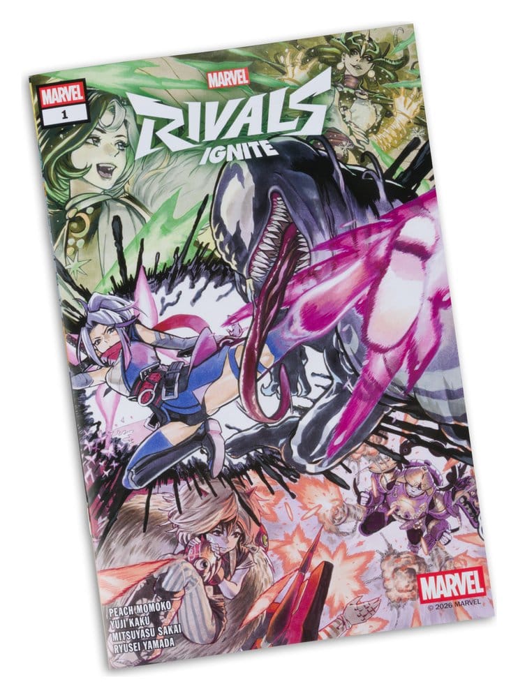 Incluye además el cómic Marvel Rivals Issue #1 y una tarjeta artística, aportando un valor extra para quienes disfrutan tanto del coleccionismo como del universo narrativo del personaje. Se presenta en una caja con ventana ideal para lucirla sin necesidad de abrirla.