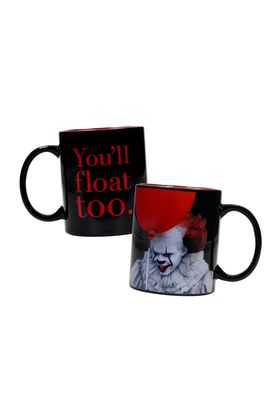 Despierta tu lado más terrorífico con esta taza de cerámica con acabado negro y arte a todo color de Pennywise y su icónico globo rojo. La impresión envolvente luce nítida y resistente, ideal para disfrutar de tus bebidas favoritas con un toque de suspense.