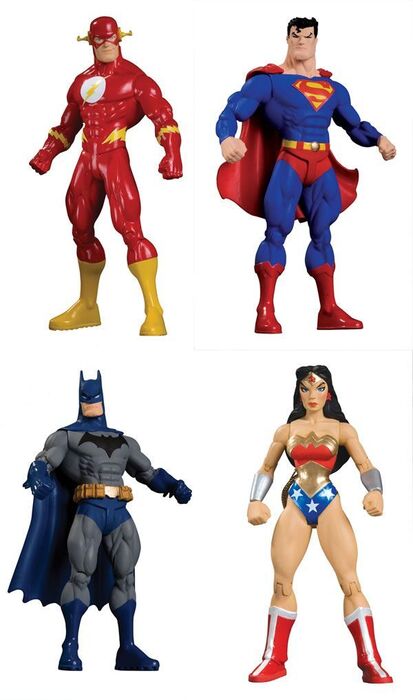 Figura articulada de unos 15cm de altura basada en el arte de Ed McGuinness. Incluye base expositora. La serie está compuesta por Batman, Superman, Wonder Woman y Flash. Se venden por separado.