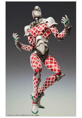 La figura JOJO'S BIZARRE ADVENTURE PART 5 GOLDEN WIND CHOZOKADO K.C. mide 16,5 cm y captura a la perfección la esencia de este peculiar personaje. Con detalles precisos en su diseño, el traje rojo y blanco con patrones geométricos y la armadura metálica resaltan la estética única de la serie.