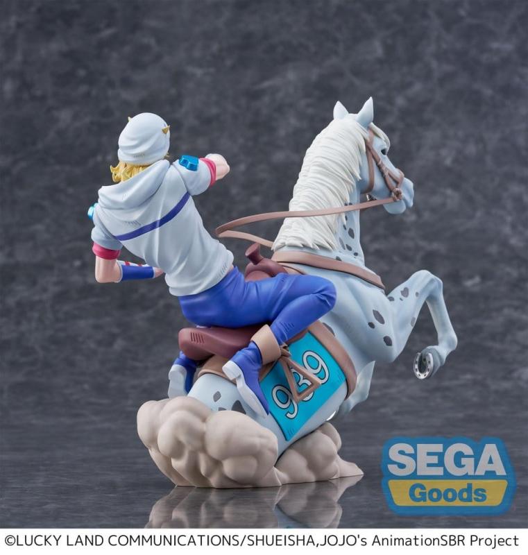 Revive la intensidad de Steel Ball Run con esta figura de Johnny Joestar en la línea XrossLinkMAX, una representación que transmite movimiento y determinación en plena acción. La escena a caballo captura un momento dinámico que refleja a la perfección el carácter del personaje dentro de JoJo's Bizarre Adventure.