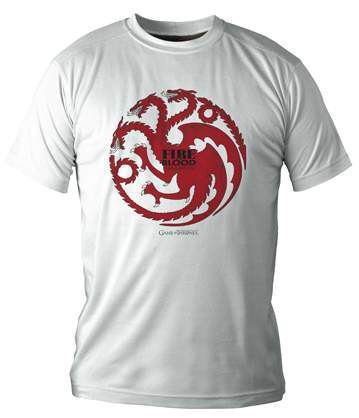 Camiseta de Excelente calidad con el emblema de la casa Targaryen. Juego de Tronos es una de la series más exitosa del momento y narra las violentas luchas entre varias familias nobles por gobernar los Siete Reinos. Producida por HBO y basada en los libros de George R.R. Martin