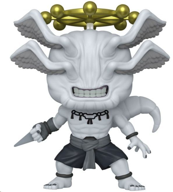 Esta figura Super Sized Pop! de Mahoraga representa a uno de los shikigami más imponentes y letales del universo de Jujutsu Kaisen. Con su cuerpo musculoso, piel blanca y rostro demoníaco, impone con solo mirarlo, acompañado por su característica corona dorada flotante.