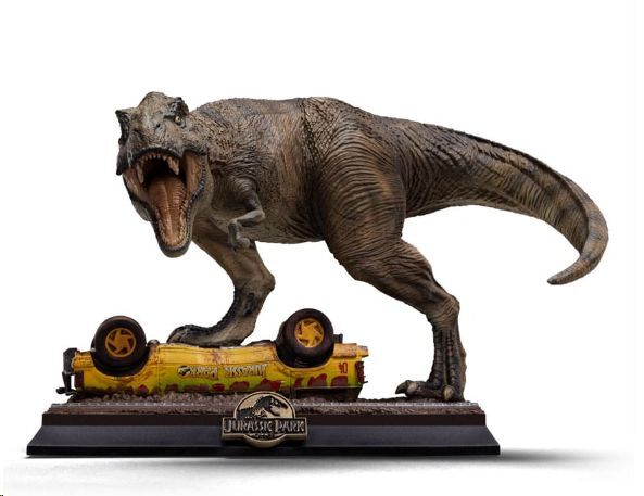 Esta estatua representa al poderoso T-Rex en medio de un ataque, mostrando impresionantes detalles en la textura de su piel y una expresión feroz que evoca el suspenso y la adrenalina de las escenas más memorables de la película. Con licencia oficial, esta pieza es perfecta para los fans de Jurassic Park y coleccionistas de memorabilia cinematográfica, ofreciendo una representación vívida y emocionante de uno de los dinosaurios más emblemáticos de la historia del cine.