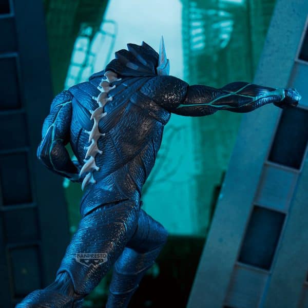 Con una altura aproximada de 24 cm, la figura destaca por su acabado de gran calidad y su pose lista para el combate. El puño adelantado, la base rocosa bajo su pie y la musculatura marcada crean una sensación de fuerza y dinamismo que recuerda a los mejores momentos del manga y anime. Cada detalle, desde la textura de la piel endurecida hasta el diseño de las garras, ha sido cuidadosamente recreado.