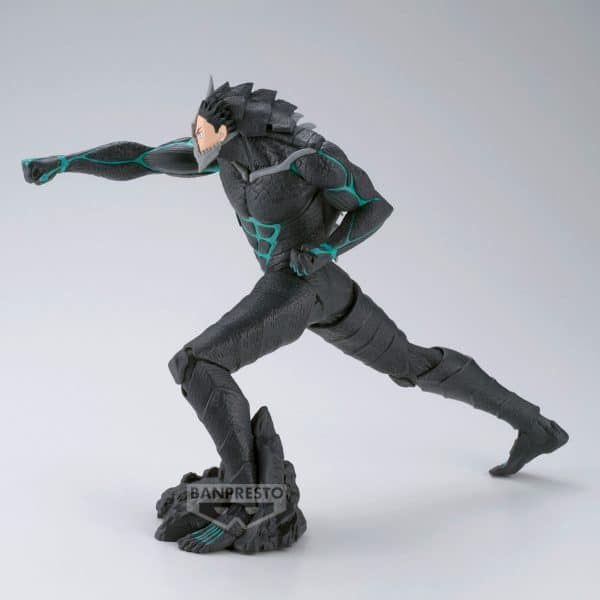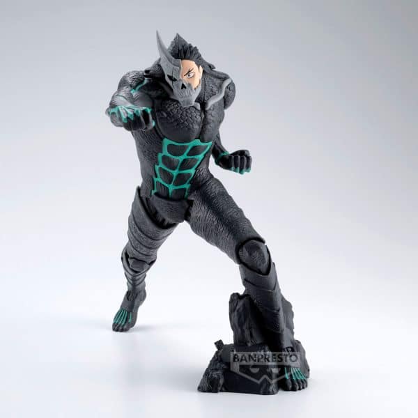 Esta figura de Kaiju No. 8 en su versión de Kafka Hibino pertenece a la línea Grandista y refleja con todo detalle la imponente transformación del protagonista. Con su cuerpo cubierto por la armadura oscura y los brillantes patrones turquesa que recorren su torso y brazos, transmite una presencia intimidante y llena de poder. La máscara parcial que deja ver parte de su rostro añade un toque aún más feroz.