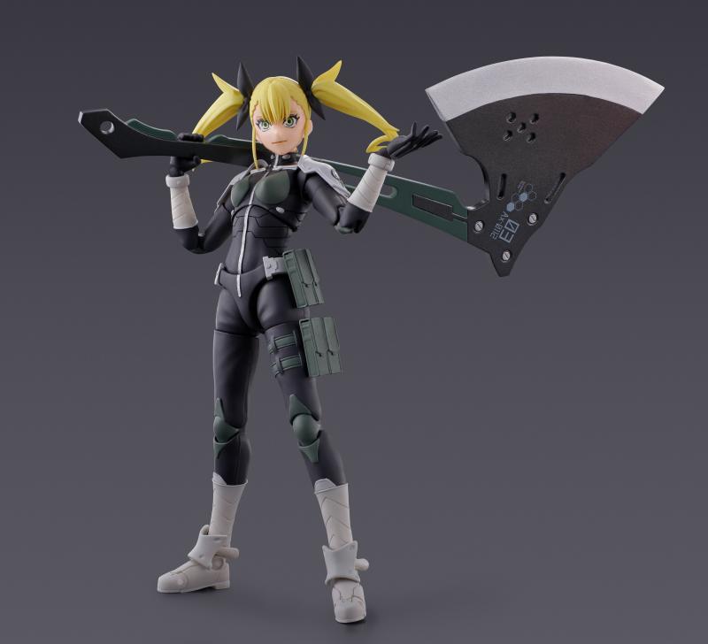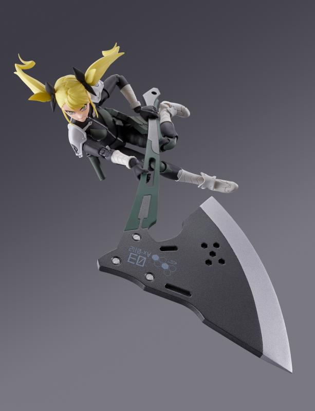 Kikoru viene equipada con 3 placas faciales intercambiables, que reflejan su expresión estándar, enfadada y seria, permitiéndote adaptar su rostro para distintas situaciones de batalla o diálogo. Incluye también 2 pares de manos intercambiables para diferentes poses de acción, una parte para el pelo que ofrece otra opción de estilo, y dos tipos de bolsas para equipamiento táctico.