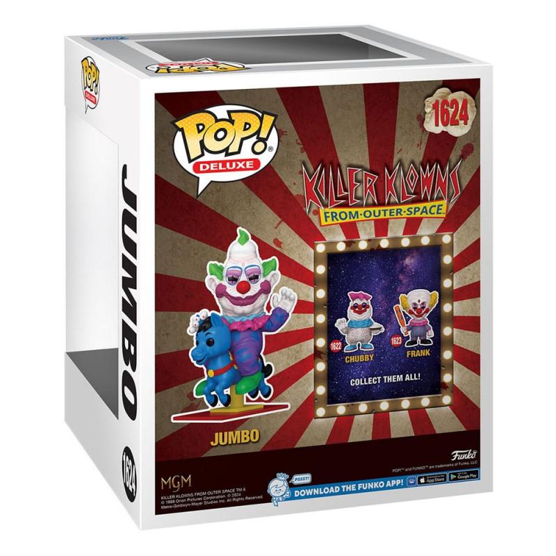 Incorporar a Jumbo en tu colección de Killer Klowns from Outer Space no solo añade una figura imponente y llamativa, sino que también ofrece un elemento único y divertido que captura la esencia de la película. Esta figura Deluxe Pop! es perfecta para los fanáticos que buscan una pieza destacada que combine la inquietante atmósfera del circo espacial con una pieza de colección de gran tamaño. ¡No pierdas la oportunidad de tener a Jumbo y su carrusel en tu colección y experimentar el perturbador encanto de los payasos del espacio exterior!