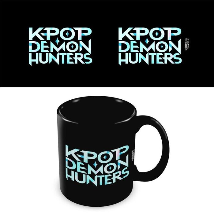 Esta taza negra de 325 ml luce el logo oficial de KPOP Demon Hunters en tonos azulados con efecto brillante que contrasta a la perfección con el fondo oscuro. Un diseño directo y potente para fans que quieren dejar clara su lealtad.