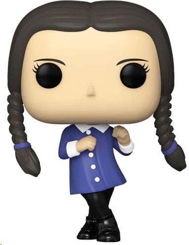 https://comicstores.es/producto/la-familia-addams-figura-pop-tv-vinyl-wednesday-9-cm_578267578267LA FAMILIA ADDAMS FIGURA POP! TV VINYL WEDNESDAY 9 CMAñade un toque de oscuridad encantadora a tu colección con la figura Pop! TV Vinyl de Wednesday Addams, la hija inquietantemente carismática de la Familia Addams. Esta figura captura a Wednesday en un momento único, "busting a move", que seguramente arrancará una sonrisa a cualquier fanático. Con una altura de aproximadamente 9,3 cm, esta figura de vinilo destaca por su detallado diseño y su fiel representación del carácter sombrío y peculiar de Wednesday.