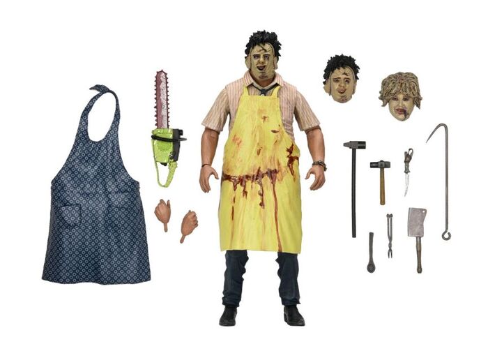 La figura mide 18 cm y cuenta con una gran cantidad de accesorios para recrear las escenas más perturbadoras de la película. Incluye tres cabezas intercambiables , permitiendo mostrar las diferentes máscaras del personaje, dos delantales intercambiables (limpio y ensangrentado), un par de manos extra , así como su arma más emblemática, una motosierra ensangrentada . Además, viene con un variado conjunto de herramientas macabras: martillo largo, martillo corto, pinzas, cuchillo, cuchilla, gancho de carne, cuchara y un brazalete .