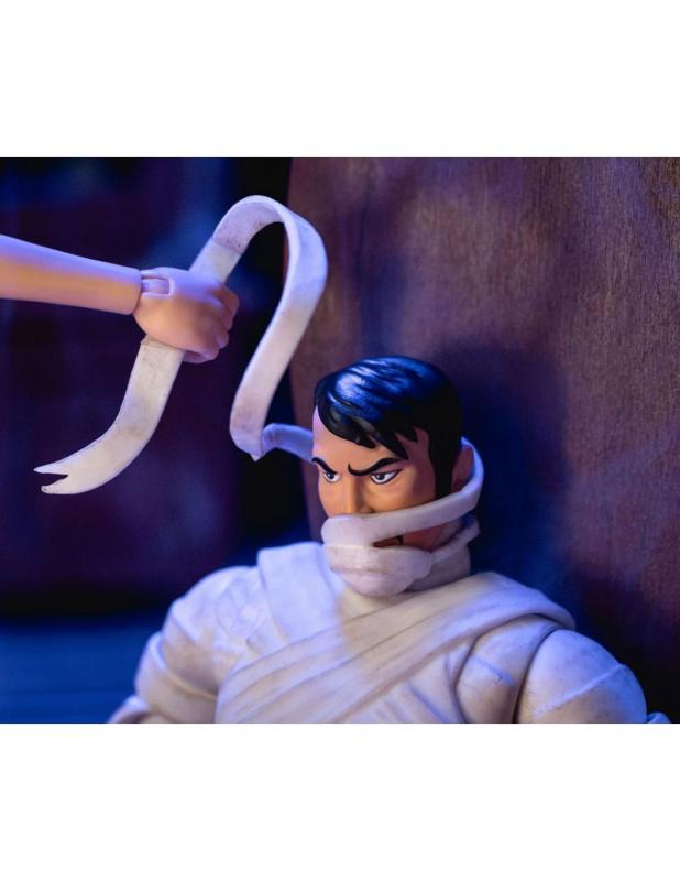 ¡Desentierra los enigmas ancestrales del desierto con esta figura articulada de la Momia de Ankha, el villano envuelto en vendajes que obsesiona a la pandilla de Scooby-Doo en busca de su codiciada moneda!