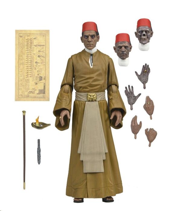 Esta impresionante figura articulada de 18 cm forma parte de la línea Ultimate Universal Monsters de Neca y captura cada detalle del personaje con fidelidad. Incluye dos cabezales intercambiables , cinco manos alternativas , una lámpara de aceite , un bastón , el pergamino de Toth y una daga de sacrificio , accesorios esenciales para recrear las escenas más emblemáticas del filme.