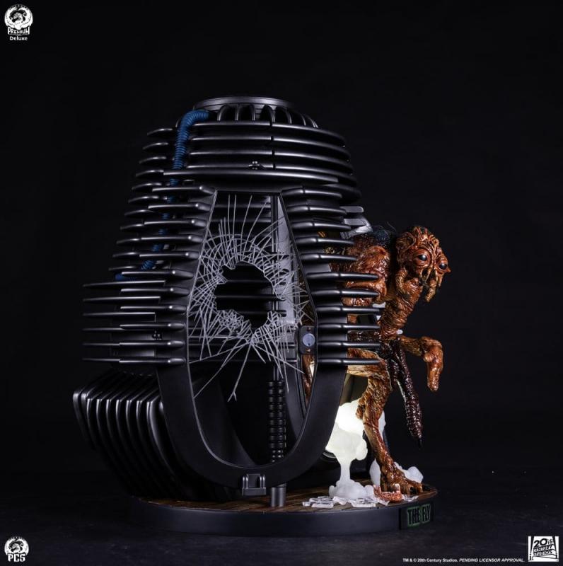 La Edición Deluxe incluye la cápsula de teletransporte, con efectos de humo luminoso, cristales rotos y restos que refuerzan la escena, como la mandíbula inferior esparcida a los pies de la figura. Además, incorpora un logotipo extraíble de The Fly, permitiendo diferentes opciones de exposición según el estilo de cada colección.