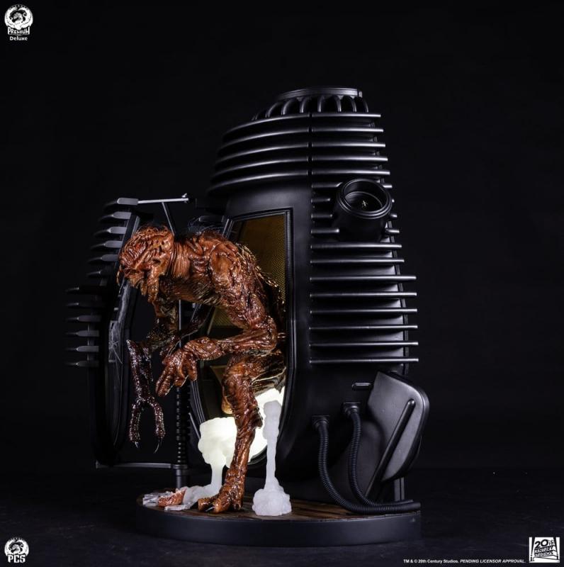 Desarrollada por Premium Collectibles Studio, la estatua presenta un esculpido totalmente detallado del híbrido humano-insecto, mostrando su anatomía deformada, sus apéndices en desarrollo y una textura orgánica extremadamente realista. El trabajo de pintura potencia cada detalle, mientras que los pelos sintéticos aportan un nivel adicional de profundidad y autenticidad.