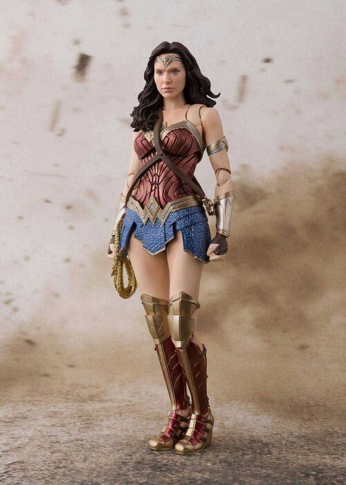 Tamashii Nations presenta la nueva figura de Wonder Woman en su versión JUSTICE LEAGUE (La película que se estrenará en Noviembre) y la incorpora a la coleccción S.H. Figuarts. Poder, gracia, sabiduría, maravilla! La princesa amazónica y legendaria superheroína Wonder Woman representa uno de los héroes más populares de América. La figura articulada de unos 15 cm ha sido coloreada utilizando técnicas digitales para un mayor realismo e incluye un par opcional de manos, una cabeza opcional y un juego de armas (espada, escudo, látigo).