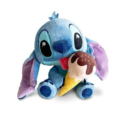 Este Stitch está para derretirse de ternura! Con 25 cm de puro encanto y un gran helado en las patas, este peluche oficial de Disney nos muestra al travieso alienígena disfrutando de su postre favorito. Su lengua asomando, orejotas caídas y acabado extra suave lo hacen ideal para abrazos sin fin.