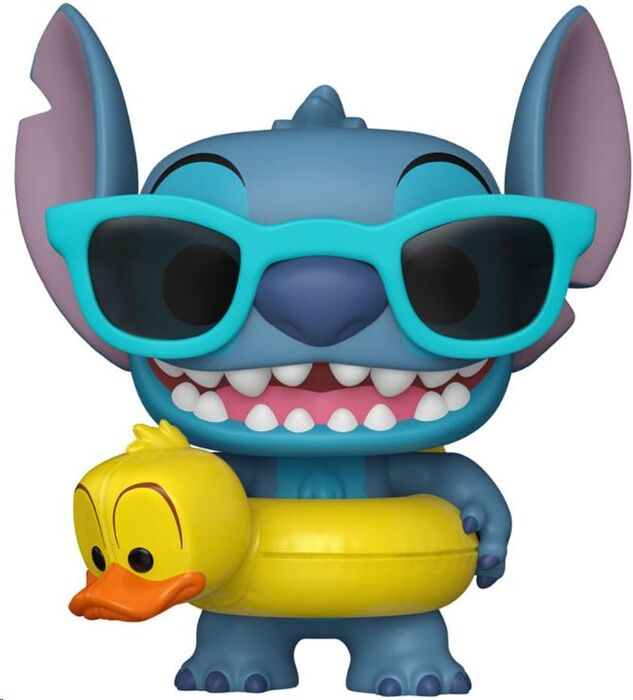 Con una altura de 9 cm, este Funko Pop! destaca por sus detalles vibrantes, desde su gran sonrisa hasta el diseño realista del flotador amarillo. Sus orejas expresivas y su pose relajada lo convierten en una pieza imprescindible para cualquier colección, aportando un toque de diversión y verano a cualquier estantería.