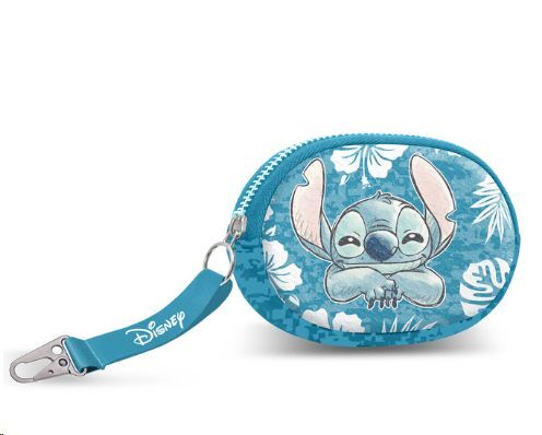 Su forma ovalada y tamaño compacto lo hacen ideal para llevar monedas, llaves, auriculares o esos pequeños objetos que nunca sabes dónde guardar. Además, incluye una cinta con mosquetón decorada con el logo de Disney, para que puedas colgarlo fácilmente de tu bolso, mochila o cinturón y tenerlo siempre a mano.