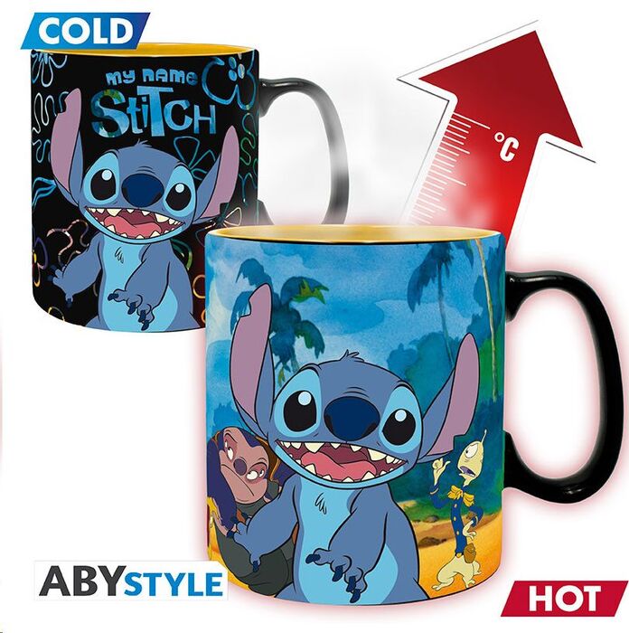 Celebra el espíritu de Ohana con este mug termocromático de Lilo & Stitch, creado por ABYstyle, donde al verter una bebida caliente emergen tus personajes favoritos, recordando que la familia significa que nadie queda atrás ni olvidado.