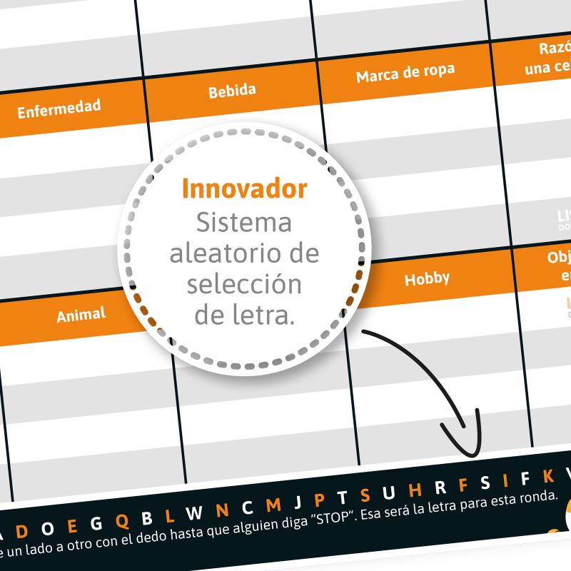 1. Elige una letra: Usa la lista de letras. Una vez alguien diga ¡STOP!, esa será la letra para esa ronda.