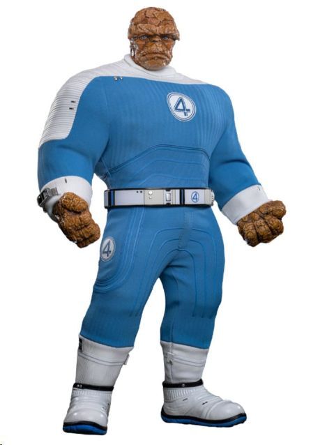Ben Grimm está recreado con textura rocosa realista, traje de tela con el clásico logo del "4" y dos cabezas intercambiables con globos oculares móviles para ajustar expresiones. Incluye además ropa extraíble, varias manos intercambiables y una base expositora personalizada con su nombre y el logo oficial del UCM.